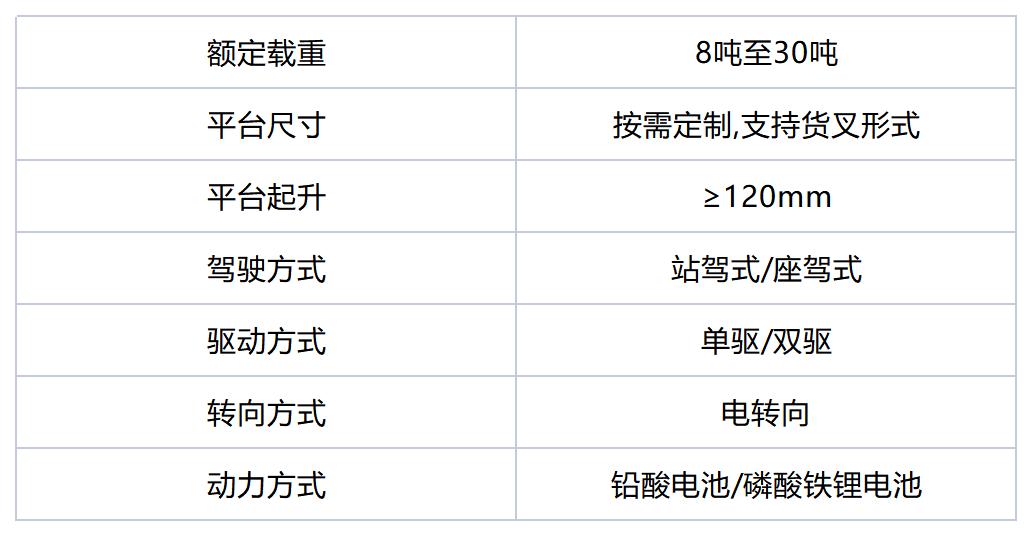 大噸位平臺起升式重載搬運(yùn)車,額定載重可達(dá)8噸至30噸。平臺尺寸支持定制,可按照實際情況設(shè)計平臺離地高度。