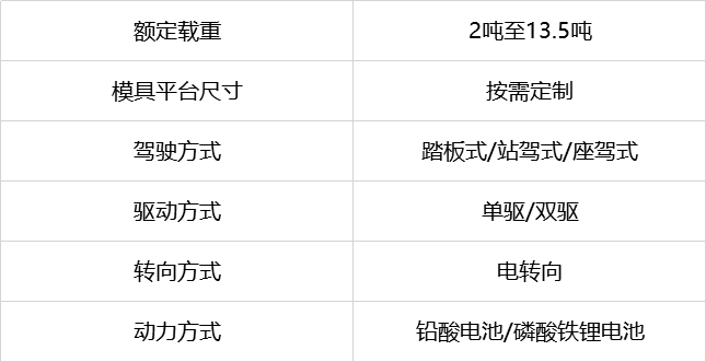 定制型模具搬運(yùn)及更換車,載重2噸至13.5噸,滿足各類模具的搬運(yùn)及快速更換。