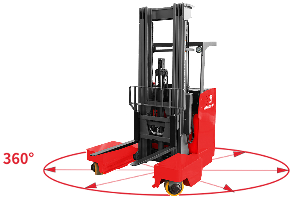 MQ系列叉車是一款適合窄巷道堆垛作業(yè)、長物料搬運(yùn)的窄體站駕式全向叉車,起升高度3.0m~8.0m。較普通前移式叉車,它具備直行、側(cè)行、斜行、直角轉(zhuǎn)彎、原地回轉(zhuǎn)等行駛模式。特別是側(cè)向行駛功能使得車輛更適合叉取長條狀的貨物,如金屬型材、鋼筋、板材等。